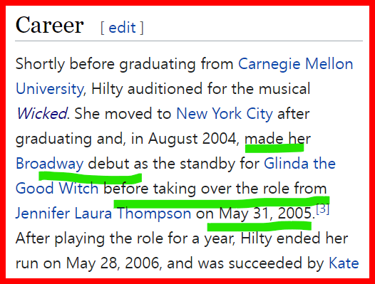 She took over her the role in Wicked on May 31 according to HIS-STORY