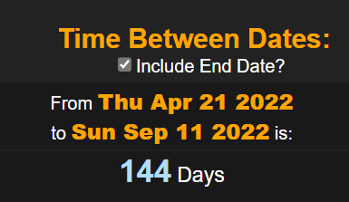September 8, 2022September 8, 2022 9/11, THE QUEEN, AND HER LOOMING DEATH. 9/11 will be 144 days after her birthday GIVE KNOWLEDGE AND SHARE THIS! Click to share on Facebook (Opens in new window) Facebook Click to share on Telegram (Opens in new window) Telegram Click to share on X (Opens in new window) X Like Loading... Related