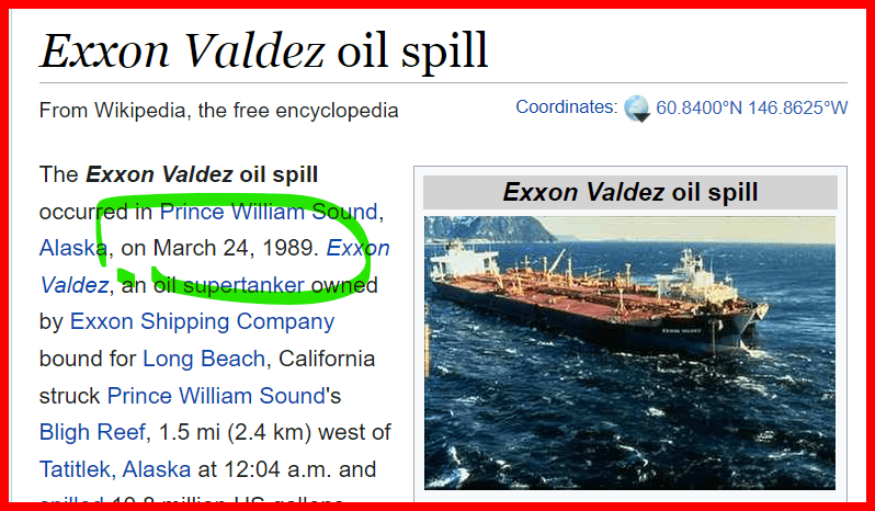 He is known for he Exxon Valdez oil spill and that occurred in 1989, 182 days before his birthday