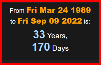 33 years and 170 days after the oil spill