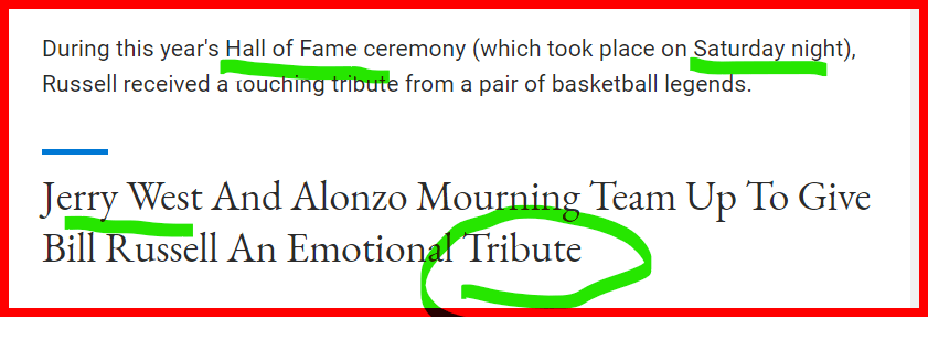 September 11, 2022September 11, 2022 42, Bill Russell Receives Epic Tribute During Hall Of Fame Ceremony. 42 days after he dies they pay Tribute to him. another 42 to add to Black History the word TRIBUTES means SACRIFICES in the headlines GIVE KNOWLEDGE AND SHARE THIS! Click to share on Facebook (Opens in new window) Facebook Click to share on Telegram (Opens in new window) Telegram Click to share on X (Opens in new window) X Like Loading... Related