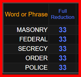 4 IS ASSOCIATED WITH DEATH AND 33 IS THE MASONIC NUMBER