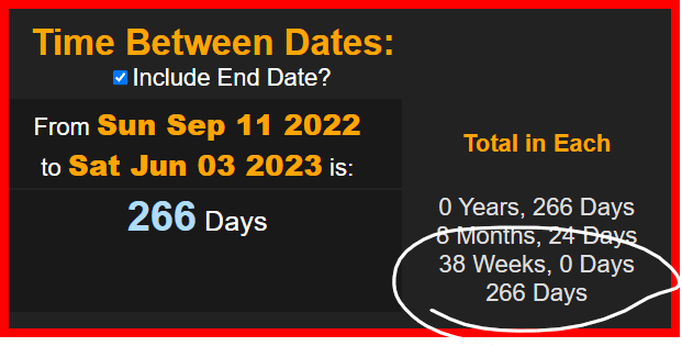 he is dead 266 days before his next birthday or exactly 38 weeks