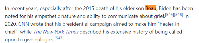 Beau dies at age 46 and Joe Biden becomes the 46th President.