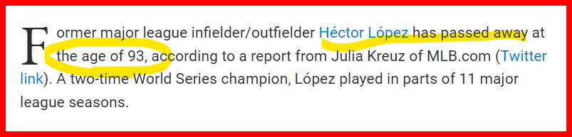 Dead at age 93 on the day leaving 93 days left in the year of 22. He was a 2time world series champion.