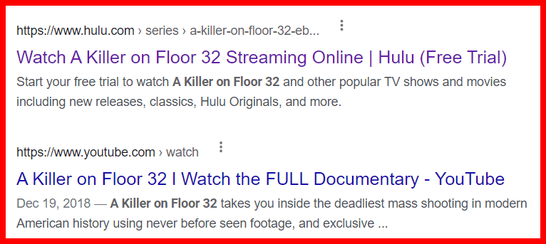 Hulu and other programming media sources released a show called A KILLER ON FLOOR 32 about the Vegas Shooting.