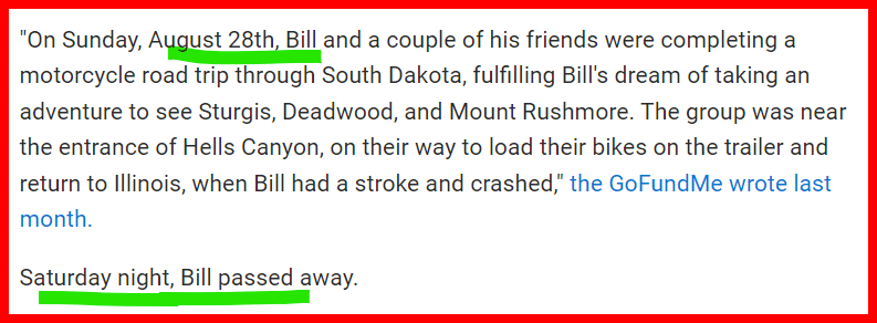 Bill is dead on Oct 1st, 105 days until his daughter’s Birthday.