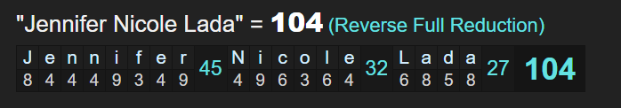 The accident happened on Aug 28th, 140 days before Jen’s Birthday. 140 in numerology is 14. just like 104 is 14 since you would remove the 0.