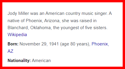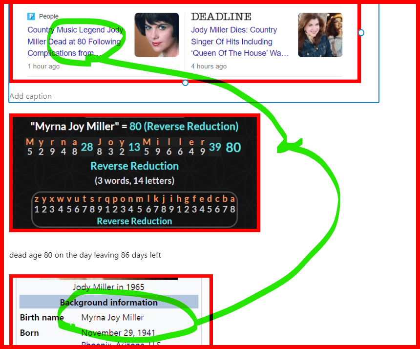 October 6, 2022October 6, 2022 Myrna Joy Miller = 80, known as Jody Miller, “Queen of the House’ dead at age 80. dead age 80 on the day leaving 86 days left GIVE KNOWLEDGE AND SHARE THIS! Click to share on Facebook (Opens in new window) Facebook Click to share on Telegram (Opens in new window) Telegram Click to share on X (Opens in new window) X Like Loading... Related