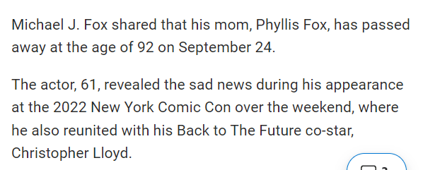 He got his fame with the show “Family Ties” and his mom dies when he is age 61