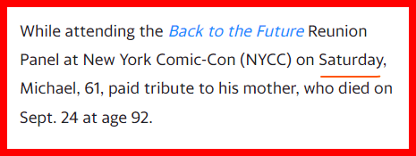 She is dead 83 days after the anniversary of Back to the Future release
