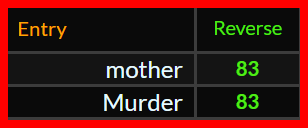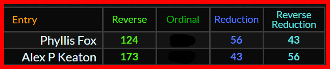 Phyllis Evelyn Fox = 229, 85, 203, 68 Base Cipher & 2803 English Extended, the 409th Prime & 1218 Reverse Sumerian. She was a known member of The Order of the Amaranth, a fraternal Masonic-affiliated organization for Master Masons and their Ladies. Order of the Amaranth = 190, 91, 296, 98 Base Ciphers & 1776 Reverse Sumerian & 919 English Extended the 157th Prime.