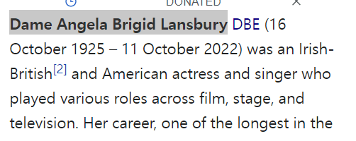 -Dame Angela Bridget Lansbury DBE – 118