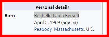 She was Born Rochelle Paula Bersoff. She tests positive 200 days after Birthday, and it is announced 201 days after her Birthday.