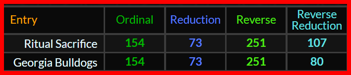 UPDATE AND SHOUT OUT TO KINGRICHARD WITH HIS DECODE AND THE CONNECTION TO THE GAME TOMORROW GATORS VS BULLDOGS.