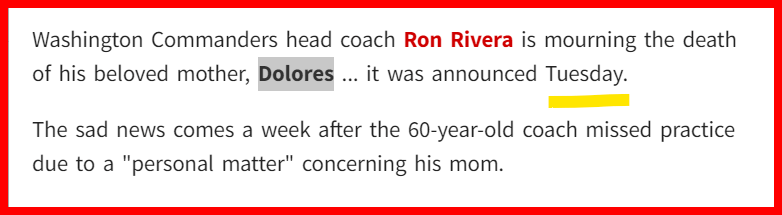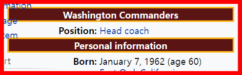 62 day span til his anniversary of Becoming coach for the Commanders