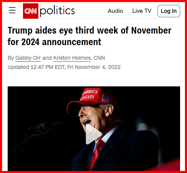 November 5, 2022 Trump 2024 and 47 Trump is expected to announce his run for 2024 Presidental election on Nov 14th. GIVE KNOWLEDGE AND SHARE THIS! Click to share on Facebook (Opens in new window) Facebook Click to share on Telegram (Opens in new window) Telegram Click to share on X (Opens in new window) X Like Loading... Related