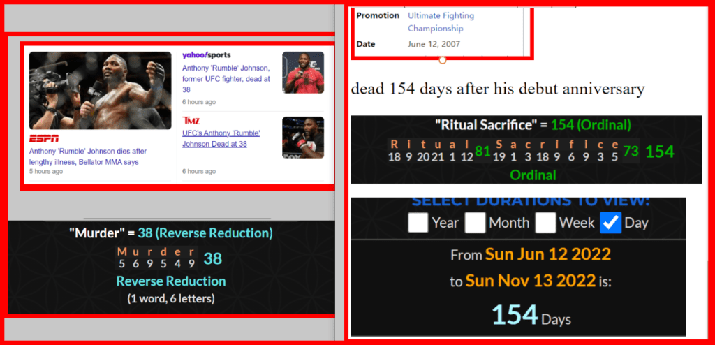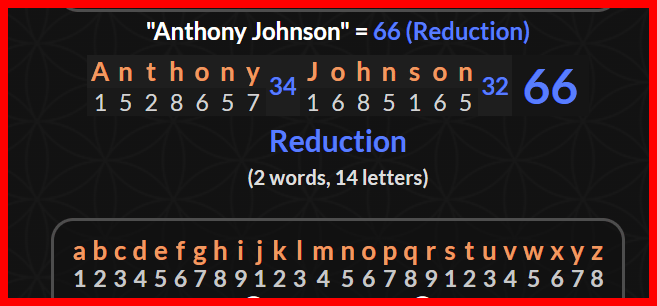 November 13, 2022November 14, 2022 Anthony Johnson is Sacrificed with the Murder number of 38. A very Familiar pattern seen in Headline deaths. dead 154 days after his debut anniversary Let’s tell the story with the date numerology. GIVE KNOWLEDGE AND SHARE THIS! Share on Facebook (Opens in new window) Facebook Share on Telegram (Opens in new window) Telegram Share on X (Opens in new window) X Like Loading... Related