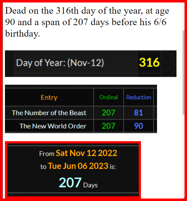 November 15, 2022 The 316th day of the year brings another scripted death. Budd Friedman dead at age 90 Dead on the 316th day of the year, at age 90 and a span of 207 days before his 6/6 birthday. GIVE KNOWLEDGE AND SHARE THIS! Share on Facebook (Opens in new window) Facebook Share on Telegram (Opens in new window) Telegram Share on X (Opens in new window) X Like Loading... Related