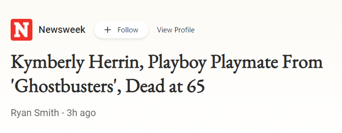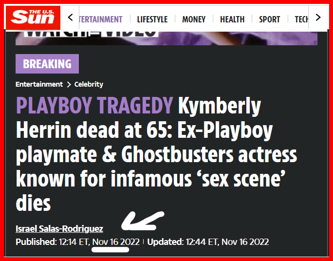 dead 38 years after the “sex Scene of Ghostbusters released.