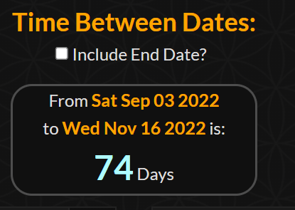 Announced on 11/16 but died on 9/3, 74 days later or a span of 75