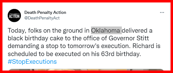 November 17, 2022 Richard Fairchild was put to death by lethal injection in Oklahoma on the day of his 63rd birthday. GIVE KNOWLEDGE AND SHARE THIS! Click to share on Facebook (Opens in new window) Facebook Click to share on Telegram (Opens in new window) Telegram Click to share on X (Opens in new window) X Like Loading... Related