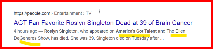 She is dead 73 days before Ellen DeGeneres’ Birthday.