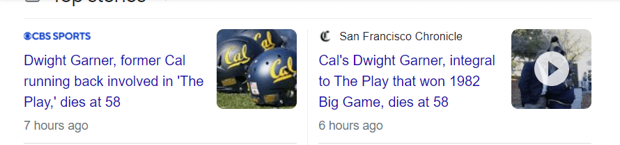 November 19, 2022 Dwight Garner, former Cal running back involved in ‘The Play,’ dies at 58 GIVE KNOWLEDGE AND SHARE THIS! Click to share on Facebook (Opens in new window) Facebook Click to share on Telegram (Opens in new window) Telegram Click to share on X (Opens in new window) X Like Loading... Related