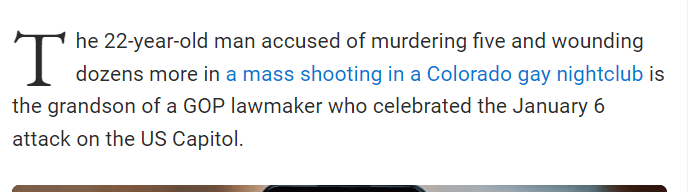 WE have an update and now they are reporting the shooter was the grandson to a republican involved in Jan 6th