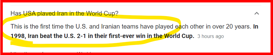 November 29, 2022 America Beats Iran, 24 years since last matchup and on the day leaving 32 days left in the year. America Beats Iran 24 years since last match up in 1998 America beats Iran on the day leaving 32 days in the year GIVE KNOWLEDGE AND SHARE THIS! Click to share on Facebook (Opens in new window) Facebook Click to share on Telegram (Opens in new window) Telegram Click to share on X (Opens in new window) X Like Loading... Related