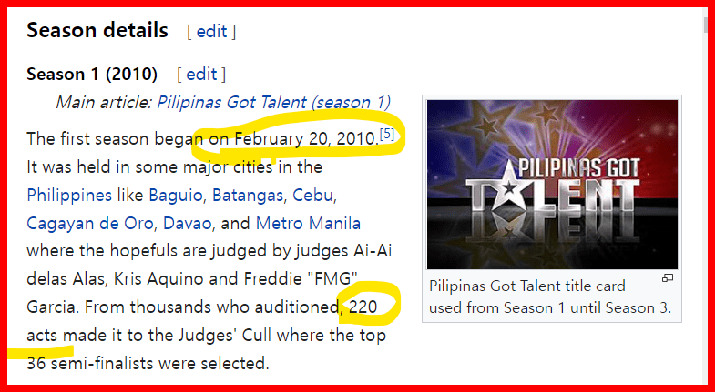 He won the first season with 220 acts,