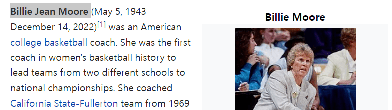 December 15, 2022 Washburn Hall of Famer Billie Jean Moore dies Dead at the age of 79 GIVE KNOWLEDGE AND SHARE THIS! Click to share on Facebook (Opens in new window) Facebook Click to share on Telegram (Opens in new window) Telegram Click to share on X (Opens in new window) X Like Loading... Related