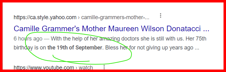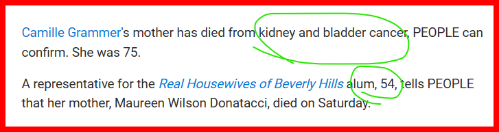 Camille Grammer’s Mother Maureen Wilson Donatacci Dead at 75, 107 days after her Birthday. A Saturnalia Sacrifice?