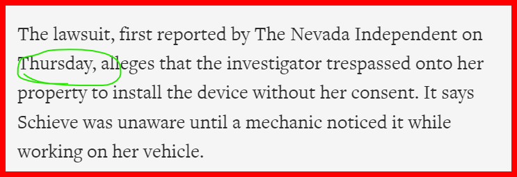 She is Sueing a maned named David McNeely, who she alleges is responsible for installing the device and tracking her,