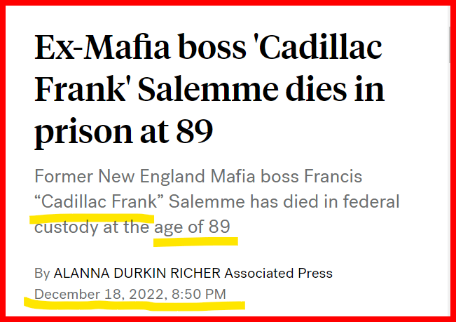 One thought on “Ex-Mafia boss ‘Cadillac Frank’ Salemme dies in prison at 89