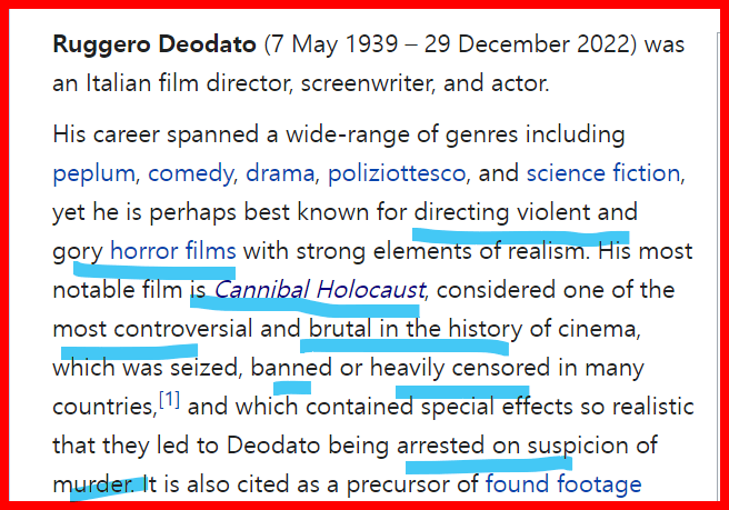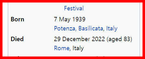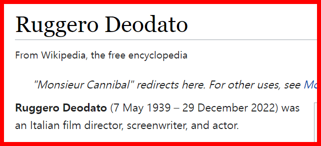 December 29, 2022December 29, 2022 ‘Cannibal Holocaust’ writer dies as age 83 The murder code of 83 GIVE KNOWLEDGE AND SHARE THIS! Share on Facebook (Opens in new window) Facebook Share on Telegram (Opens in new window) Telegram Share on X (Opens in new window) X Like Loading... Related