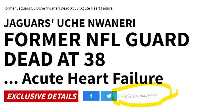 He wore Number 77 and his death is Headline News, Jan 2, 77 days before his birthday.