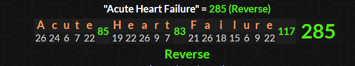 Dead of Acute Heart Failure 285 days after his Birthday.