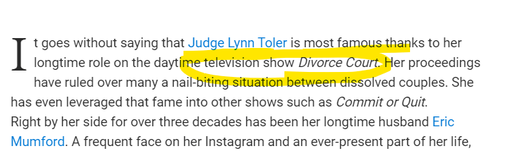 Dead at age 72, and 72 days after her Birthday and she is known for DIVORCE COURT = 72