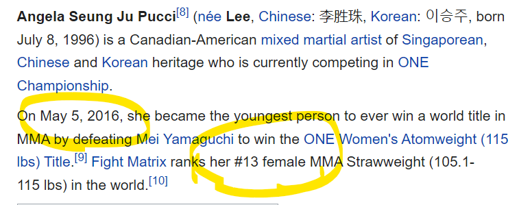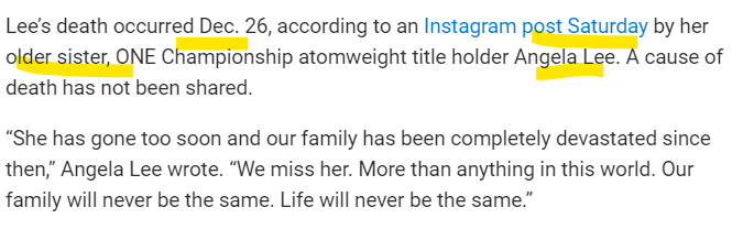 Her sister Angela Lee released the News and she is the ONE Championship Atomwright Title Holder.