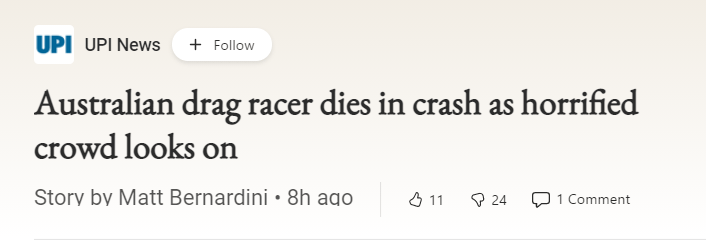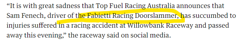 One thought on “Sacrifice and 1/07. Australian Drag Racer dies in Crash.