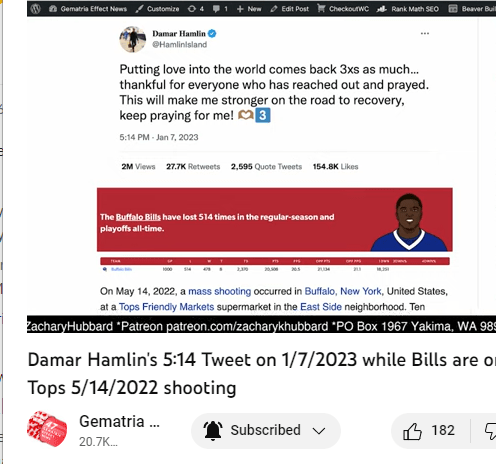 He tweets at 5:14 for the first time since the bullshit collapse. The top shooting in Buffalo was on 5-14 and the Bills are currently at 514 all time loses.