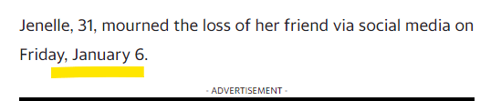 She is killed 17 days after Jenelle Evans Birthday on Jan 5th.