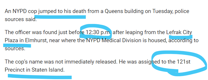 Jumped from the Lefrak City Plaza and worked in the 121st Precinct.