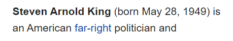 Rep Steven King ask her to come testify…. Steven King of all names … Mockery.