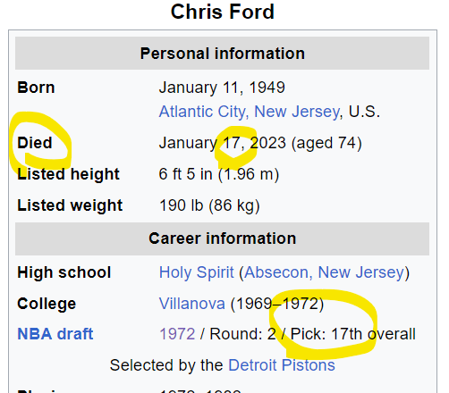17th Pick and 17th Death date… Kill = 17. He went to Holy Spirit High School