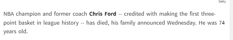 He is known for making the first 3 point shot in 79′