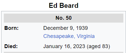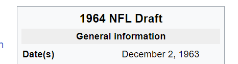He drafted on Dec 2 in 64′ and died 46 days after the anniversary
