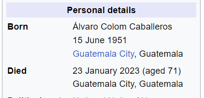 (223) The Synagogue of Satan has announced the death of Former Guatemala President, Alvaro Colom, 223 days after his Birthday.