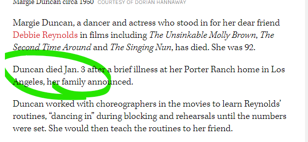 Duncan died Jan. 3 after a brief illness at her Porter Ranch home in Los Angeles, her family announced.